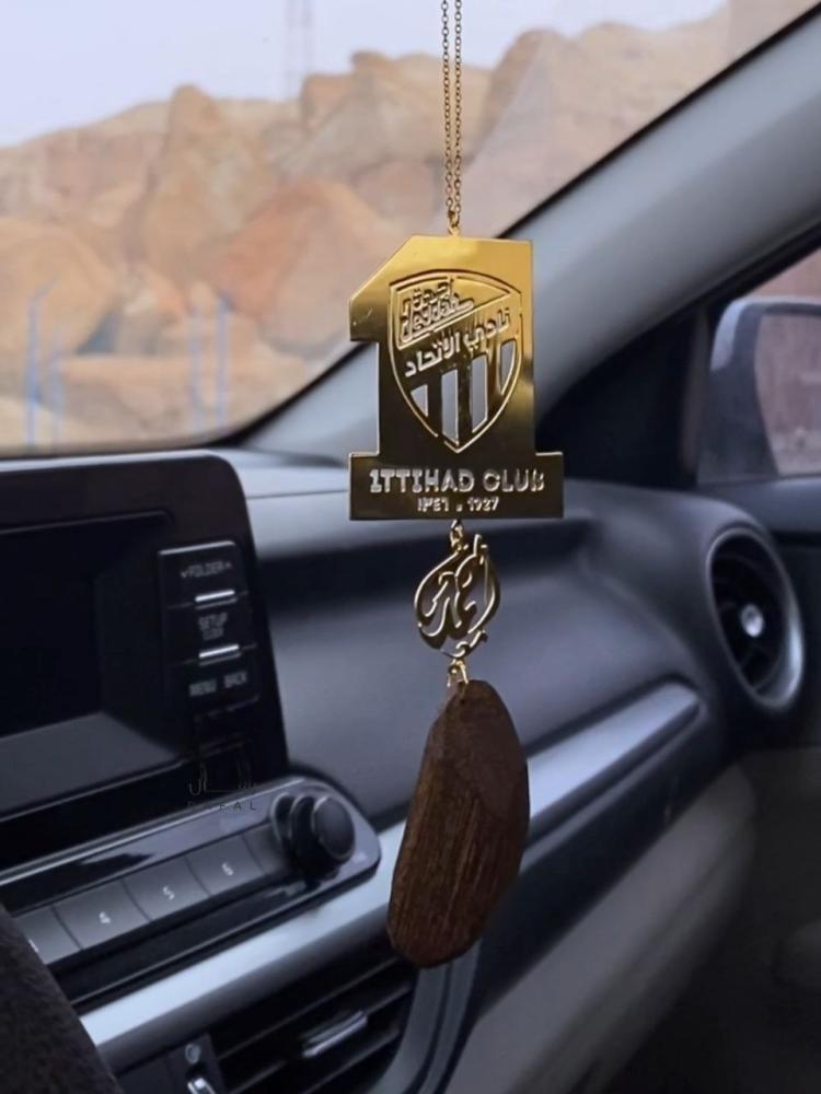 تعليقة سيارة بالاسم مع شعار نادي الاتحاد وعود بخور