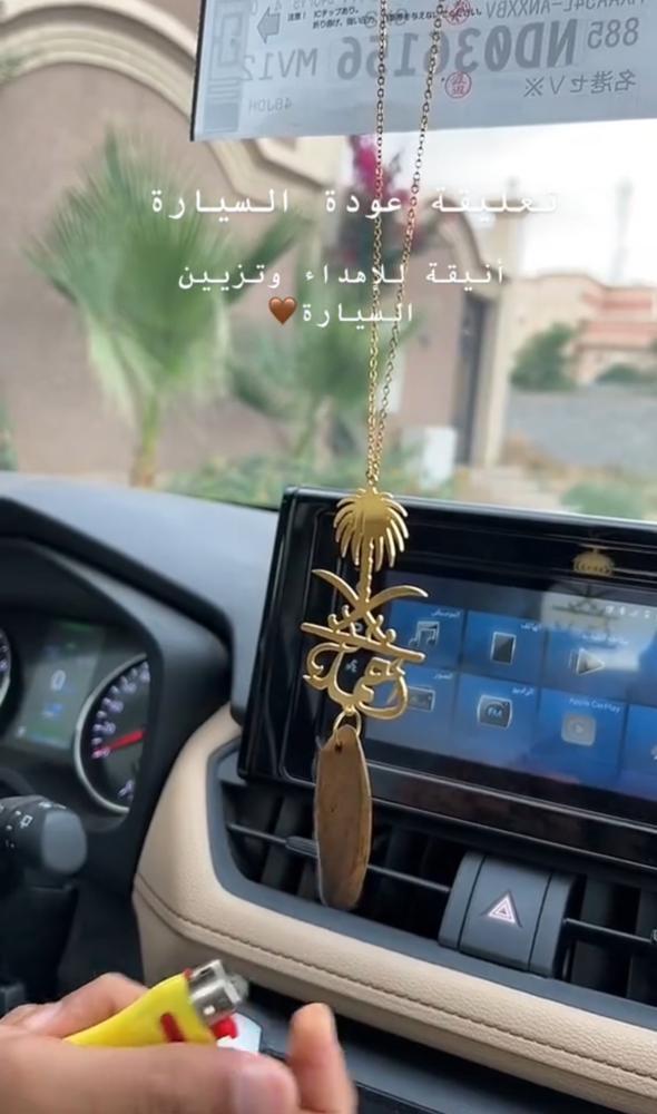تعليقة سياره بشكل خريطة المملكة بالاسم مع كسرة العود